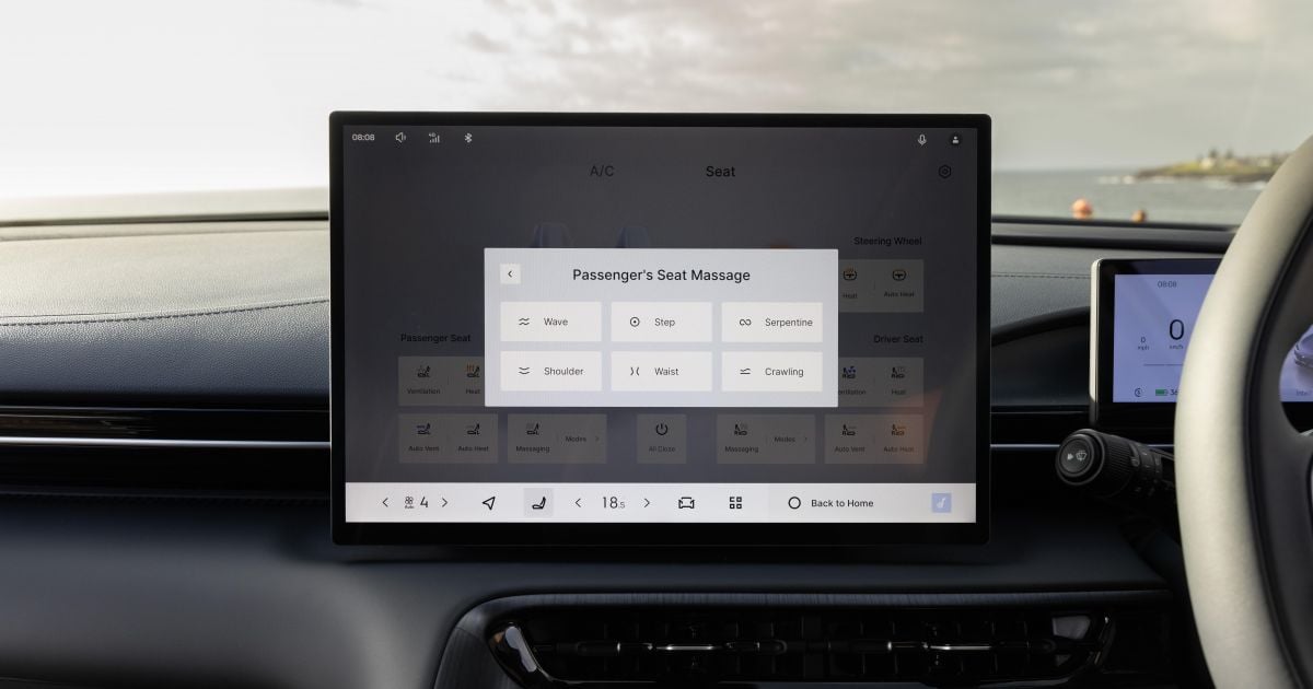 While the driver’s seat is typically the best place to sit in most cars, in the EX5 it’s arguably the front passenger seat. It features a power extendable leg rest, which is cool to use on longer trips to kick back and relax.
